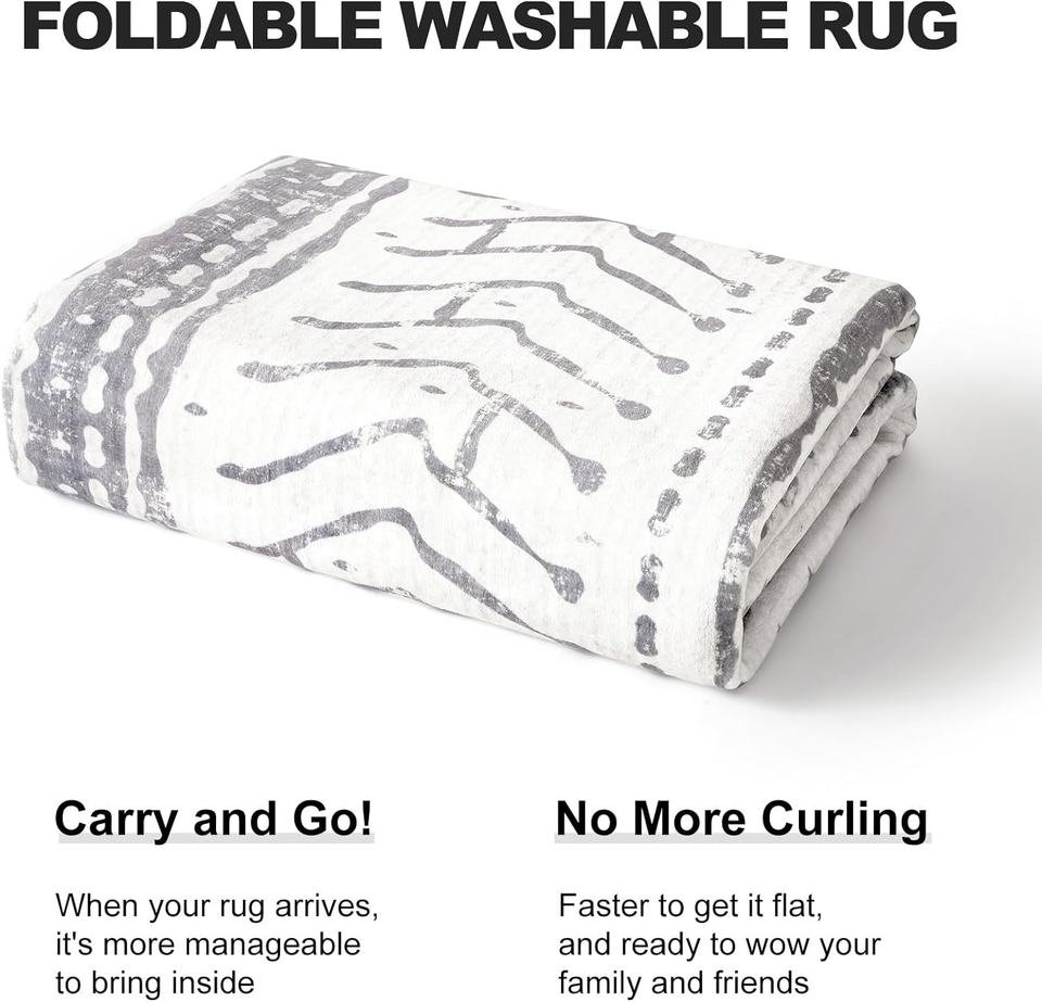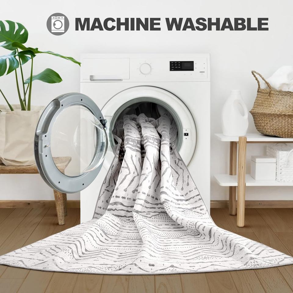 Alfombra de área, alfombras lavables, alfombra Bohemia para sala de estar, antideslizante, ultrasuave, con estampado geométrico, alfombra de pila baja para comedor y dormitorio