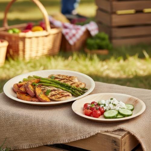 Platos Desechables de Palma Areca, Compostables, Ecológicos, Aptos para Alimentos, Aptos para Microondas, Redondos de 10 Pulgadas, para Eventos y Bodas
