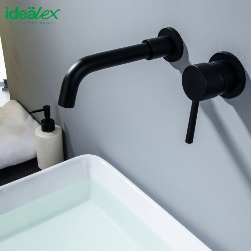 Grifo Monomando Ares Idealex para Lavabo, Diseño Moderno, Estilo Antiguo, Montaje en Pared, Mezclador Negro para Baño, Hotel o Villa a un Precio Accesible