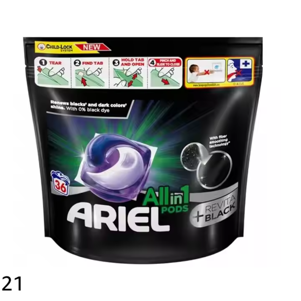 Ariel All-in-One Pods + Cápsulas de lavandería Revitablack-36 Piezas/36 Cápsulas para Negro