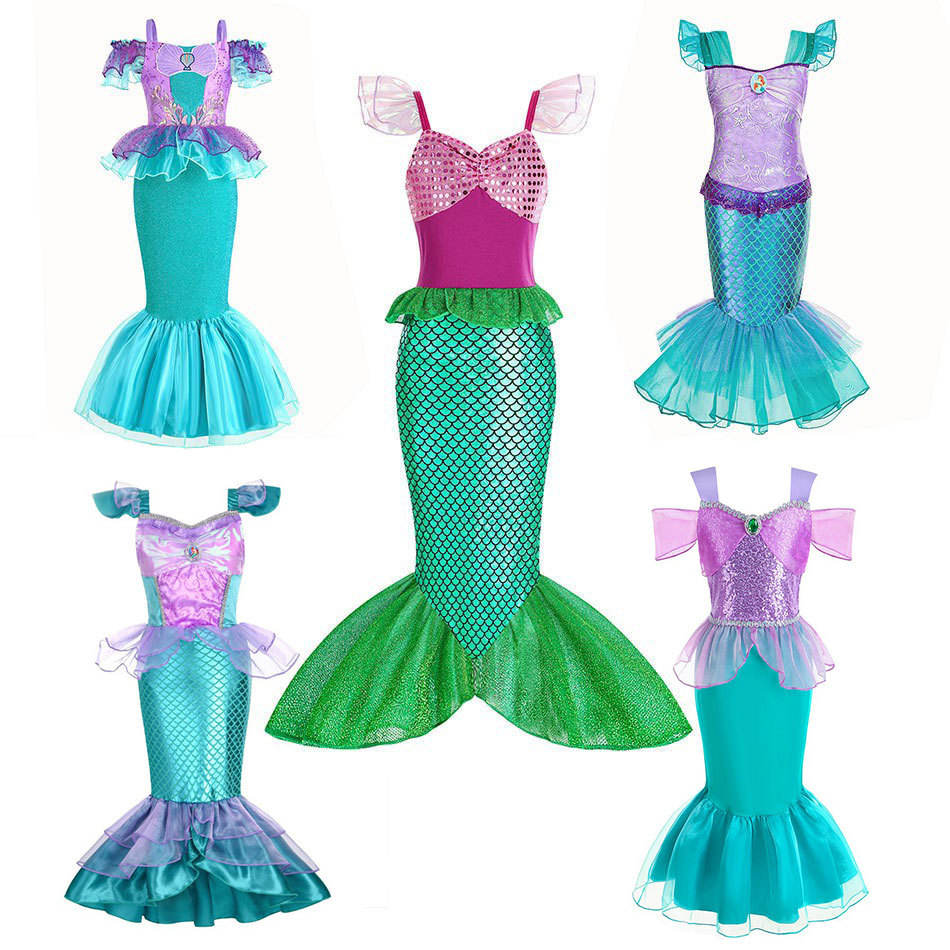 Nombre del producto:Niñas sirena Ariel princesa vestido Cosplay trajes