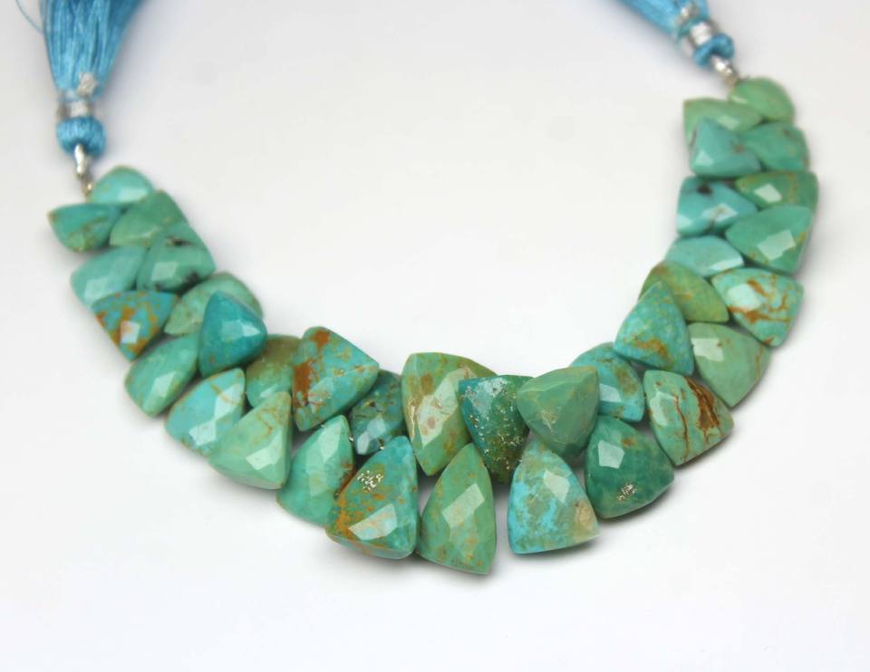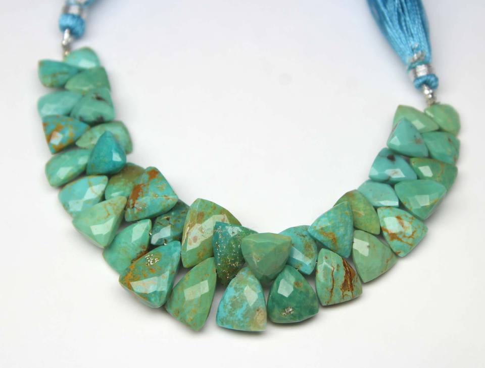 Cuentas facetadas de turquesa de Arizona en forma de trillón de 5 pulgadas, piedra natural de calidad AA, 1 hebra para la fabricación de joyas