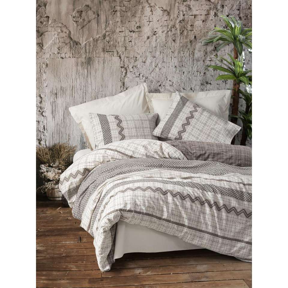 Juego de funda nórdica doble Toprak de caja de algodón marrón Arlo