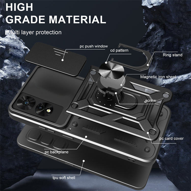 Armor Hard PC + TPU Bumper Funda de teléfono a prueba de golpes Slide Window Magnetic Ring Holder Cover para TCL 501 505