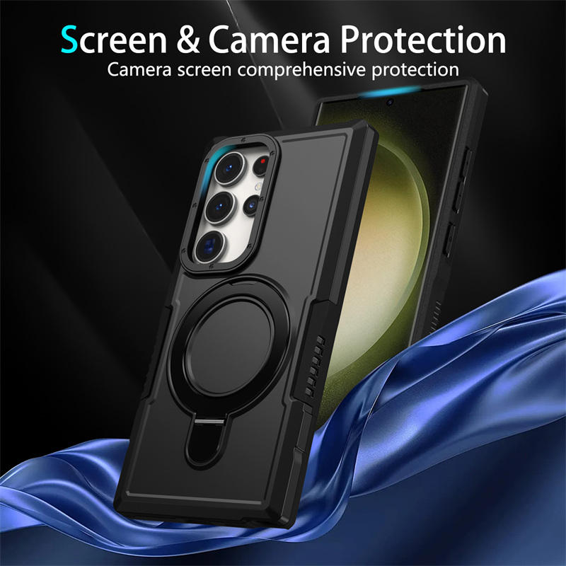 Armor Hybrid TPU + PC funda trasera para Samsung Galaxy S25 S24 S23 S22 S21 Ultra Plus S23 S20 FE Note 20 Ultra con soporte de anillo giratorio