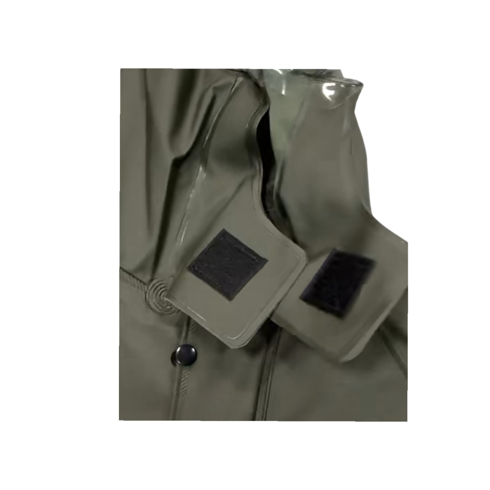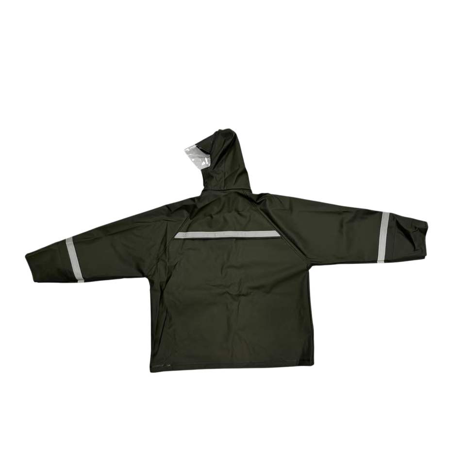 Chaqueta de Pesca Resistente de PVC Verde Militar de 0.45mm con Franjas Reflectantes, Capucha Integrada y Malla Transpirable, la Mejor para Buceo, Impermeable