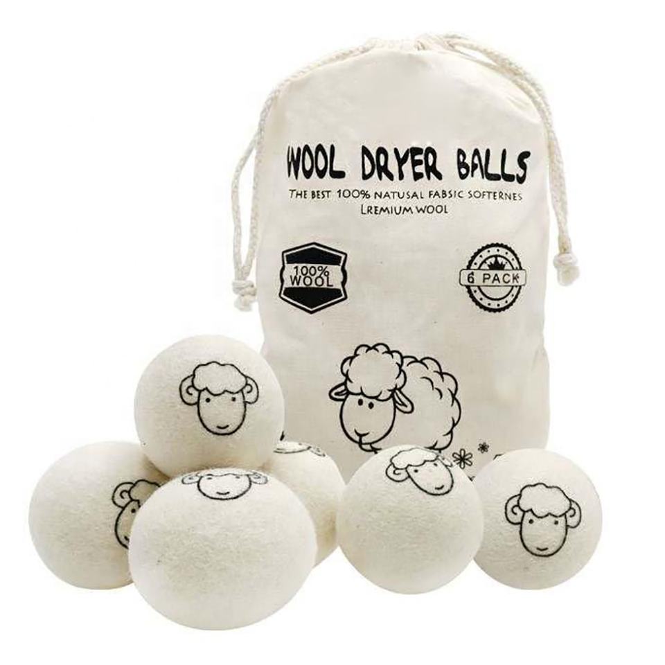 Novedades 2024, Top Ventas, Bolas de Secadora de Lana Orgánica de Nueva Zelanda XL de 7 cm, Reutilizables y Ecológicas, Paquete de 6 con Bolsa de Algodón