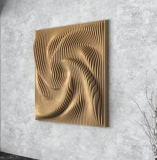 Decoración de Pared de Madera Ondulada Paramétrica Art Deco con Ondas Retorcidas, Archivos Digitales para Máquinas de Corte de Madera CNC - Opción para Colgar