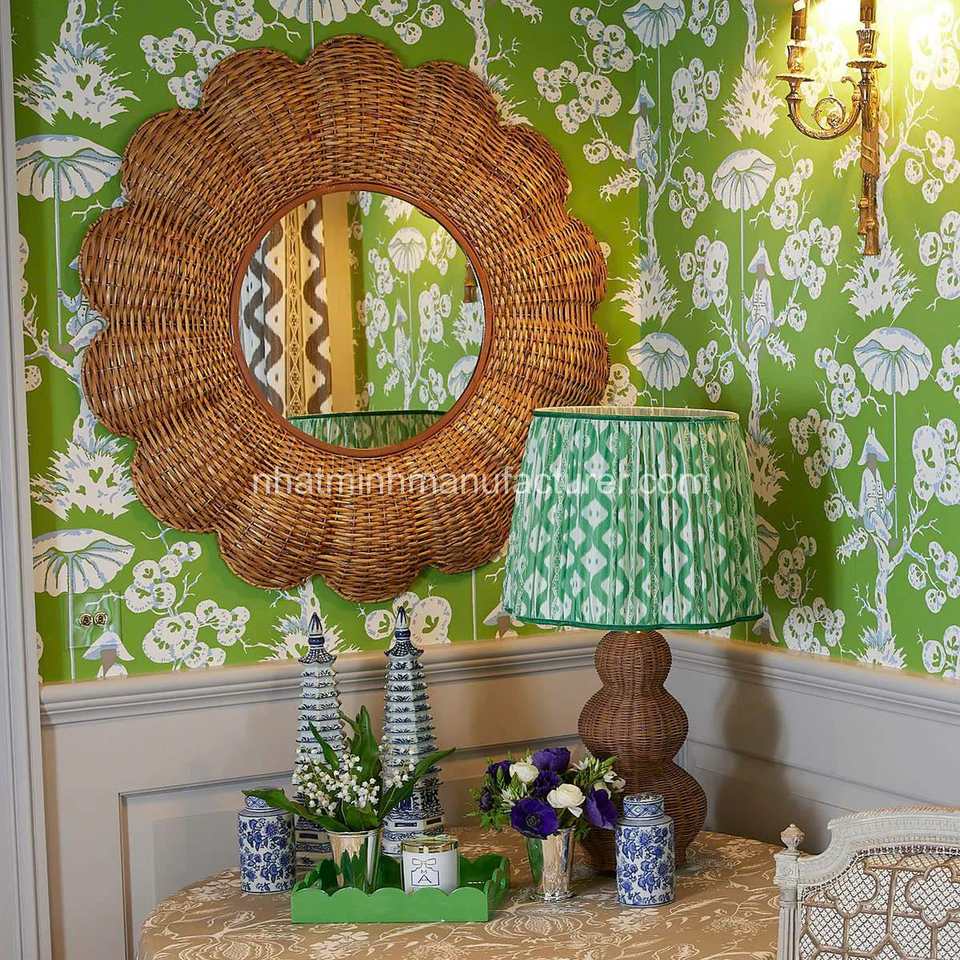 Espejo de pared de ratán redondo Art Deco con espejo decorativo enmarcado en forma de flor de 14 pétalos para uso doméstico y hotelero negro