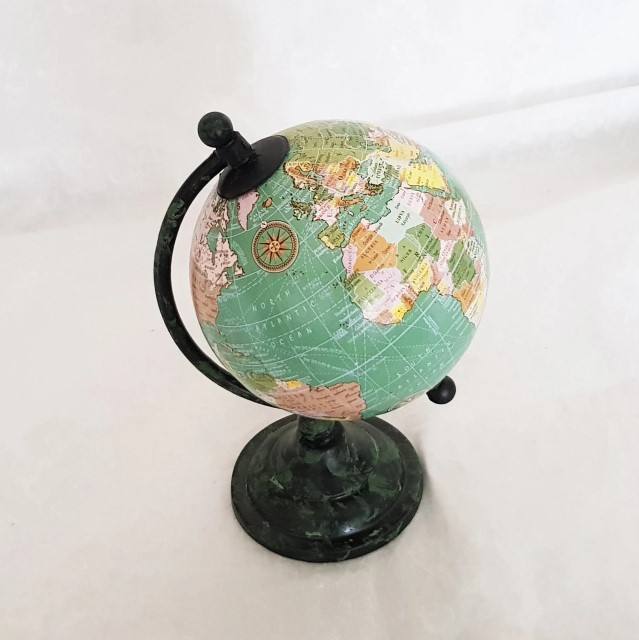 Globo de aluminio de estilo Art Deco con soporte negro verde Soporte de artesanía de metal hecho a mano