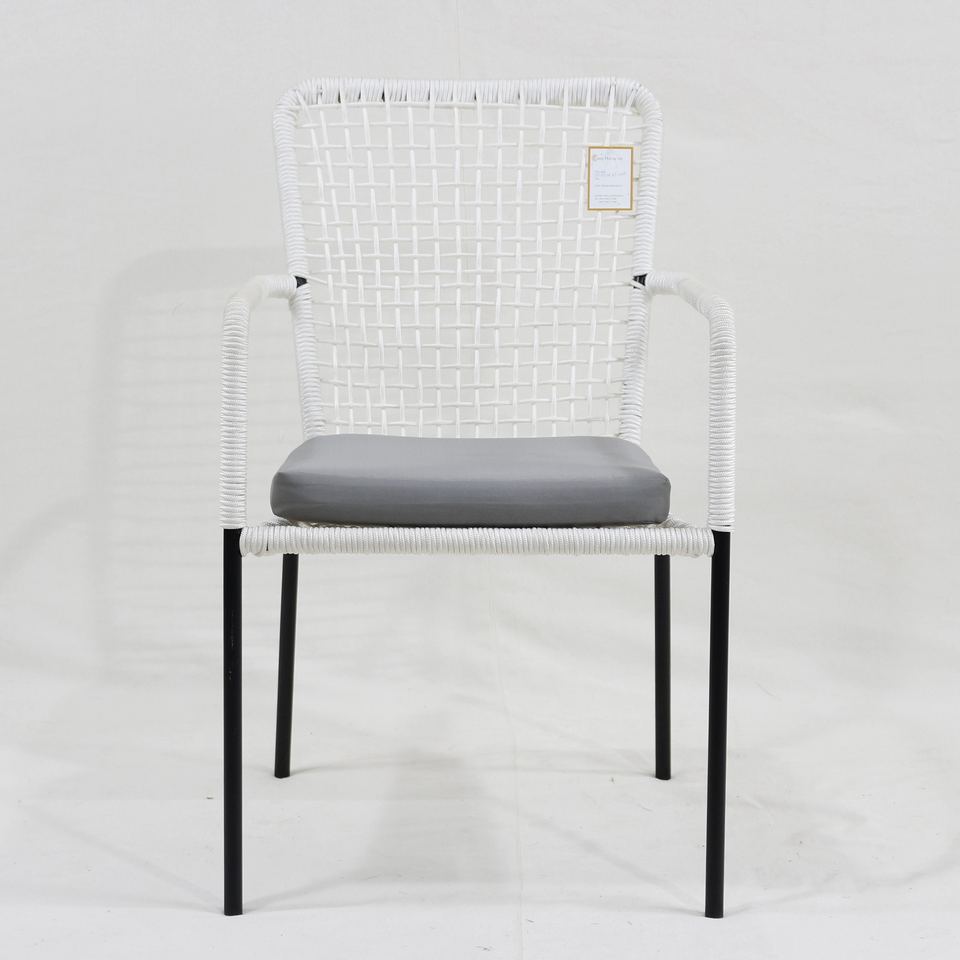 Artex Dong Thap-Silla de respaldo tejida de cuerda duradera con marco de tubo de hierro negro y cómodo tejido de red de nailon blanco