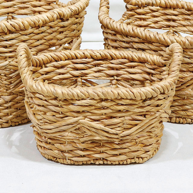 Juego de 3 Cestas Organizadoras Pequeñas de Jacinto de Agua Tejidas a Mano con Asas, Marca Artex Dong Thap
