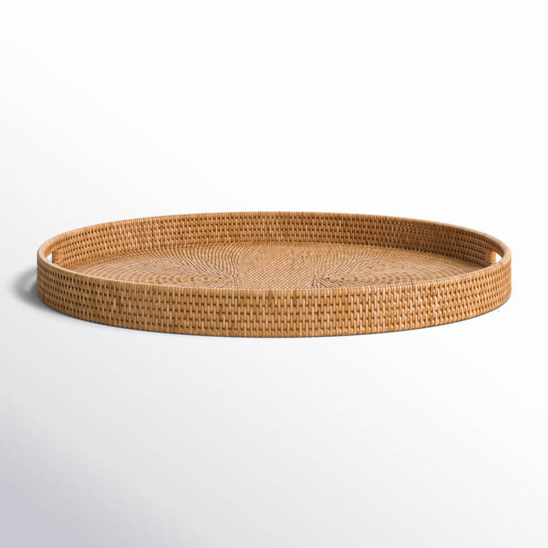 Artefactos Bandeja de servicio de ratán con asas recortadas Diseño otomano ovalado