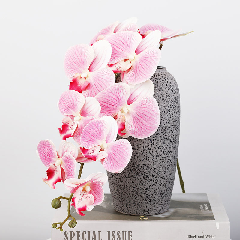 Orquídea artificial de tacto real de látex suave 3D con 9 cabezas para decoración del hogar de bodas Flores artificiales de Orquídea de mariposa de 9 cabezas