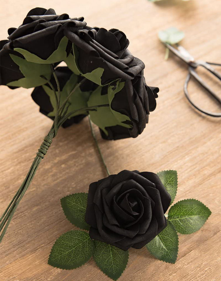 Juego de caja de flores artificiales 25PCS Rosas negras de aspecto real con tallo para centros de mesa Adorno de jardín para fiesta de despedida de soltera