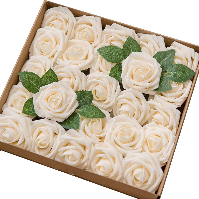 Flores artificiales 25PCS Cream Roses Flower Box Set con tallo para centros de mesa de boda DIY y decoraciones de mesa