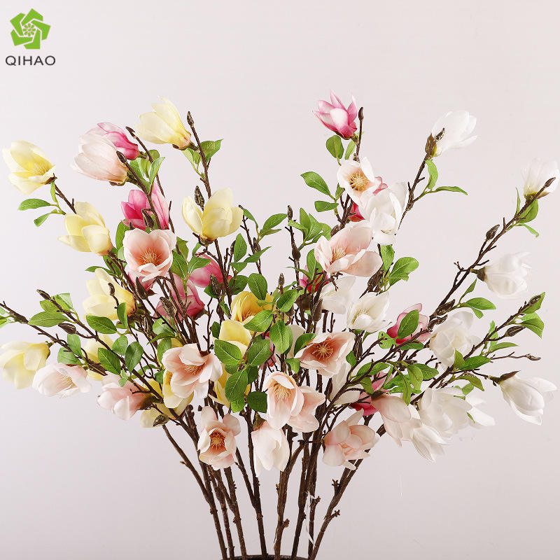 Flores Artificiales de Magnolia de Seda, Alta Simulación, Decoración para Bodas y Hogar, Múltiples Cabezas, Rosa, Rojo, Amarillo, Champán