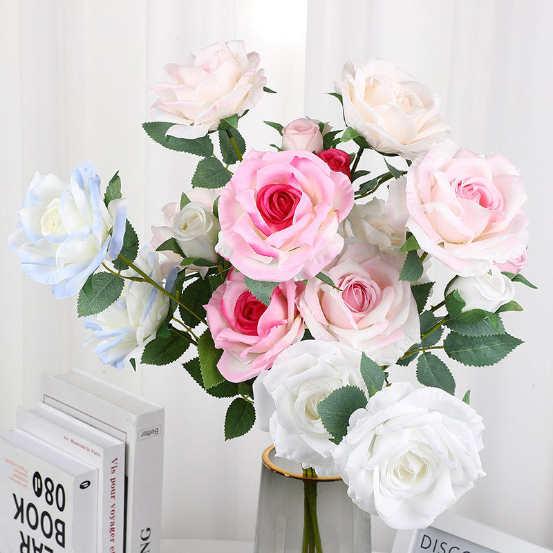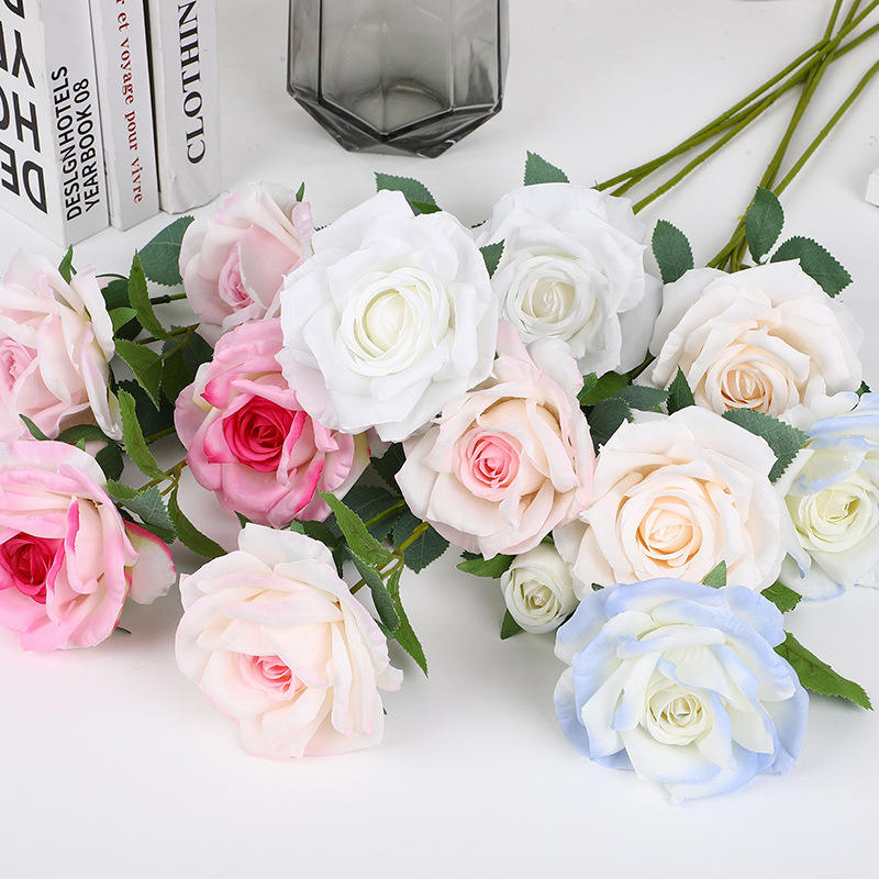 Ramo de Rosas Artificiales de Seda, Alta Simulación, Decoración para Bodas y Hogar, 5 Colores: Rosa Claro, Blanco, Azul, Champán