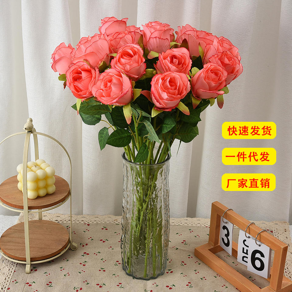 Rosas Artificiales de Seda, Flores Rosadas para Decoración de Bodas y Hogar, Accesorios de Fotografía, Arreglos para Jarrones