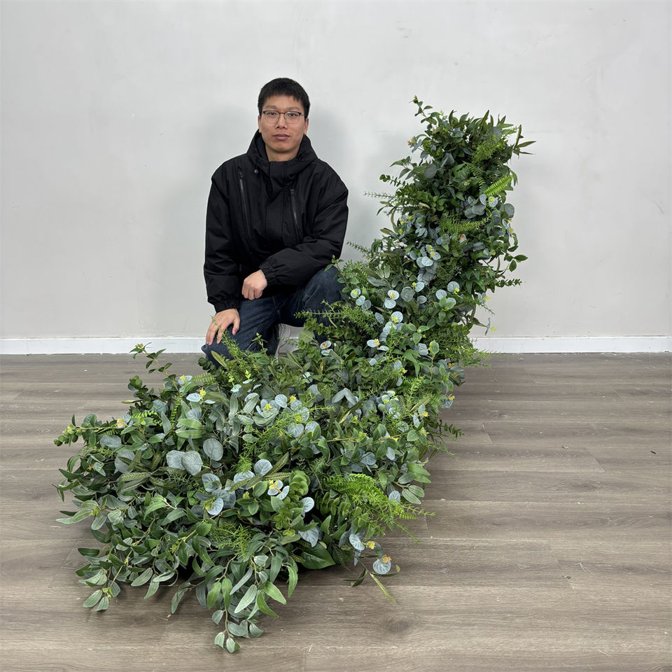 Camino de Mesa de Flores Artificiales de Seda - Plantas Verdes Realistas de Alta Simulación, Impermeables, Tamaño Personalizable para Bodas y Negocios