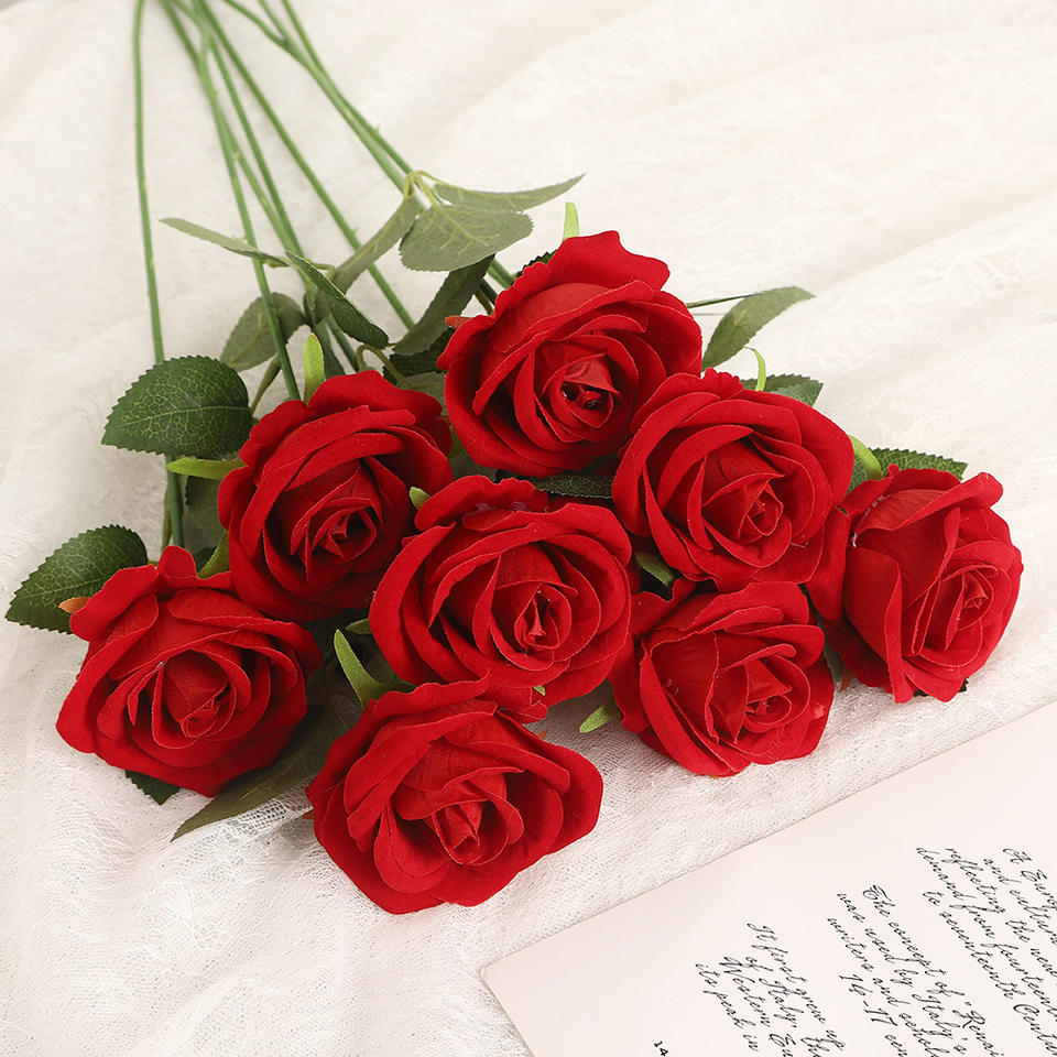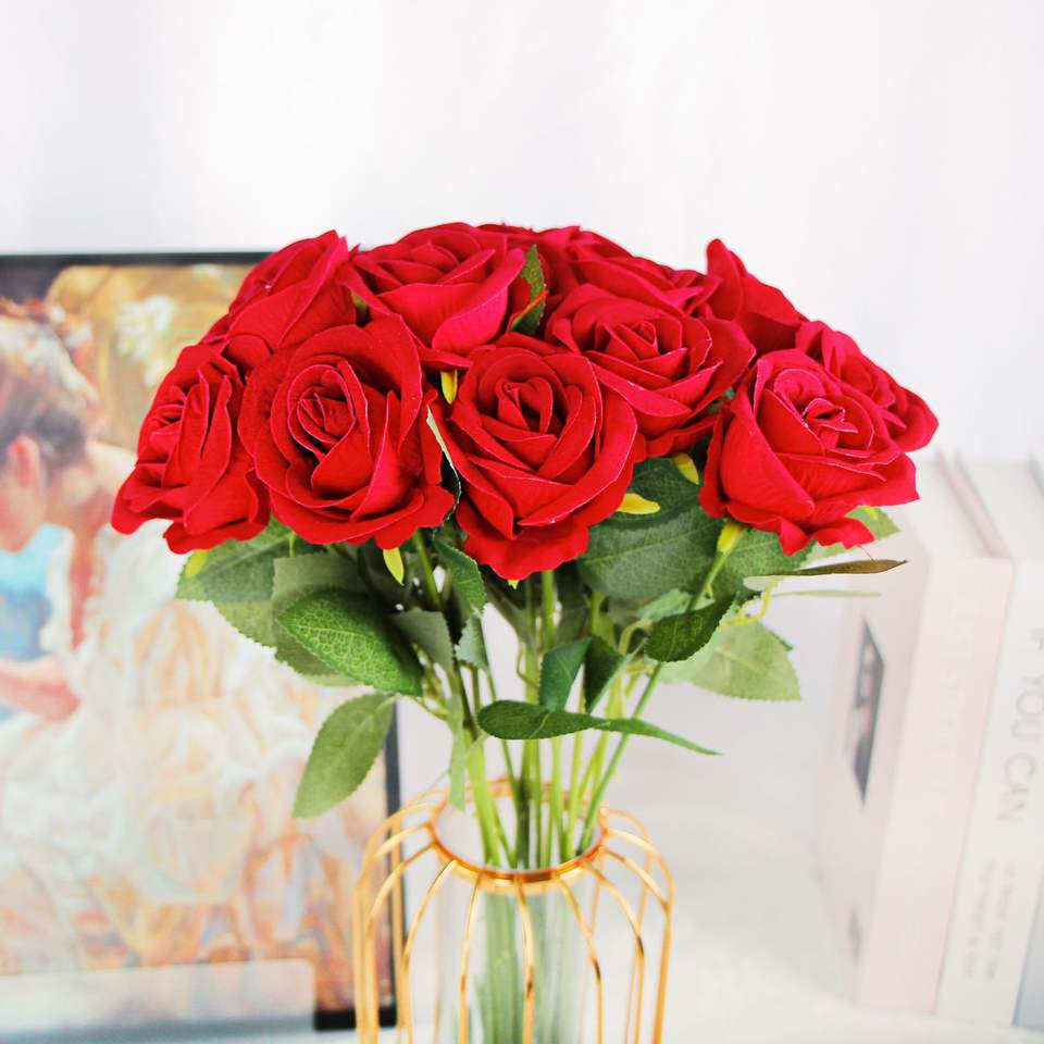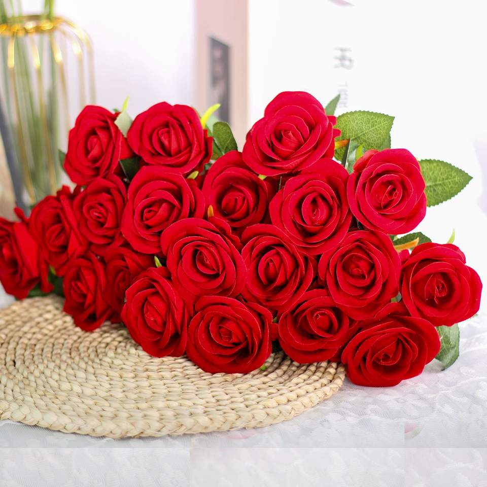 Rosas de terciopelo artificial de 50 cm, ramo de rosas rojas para decoración de bodas y hogar