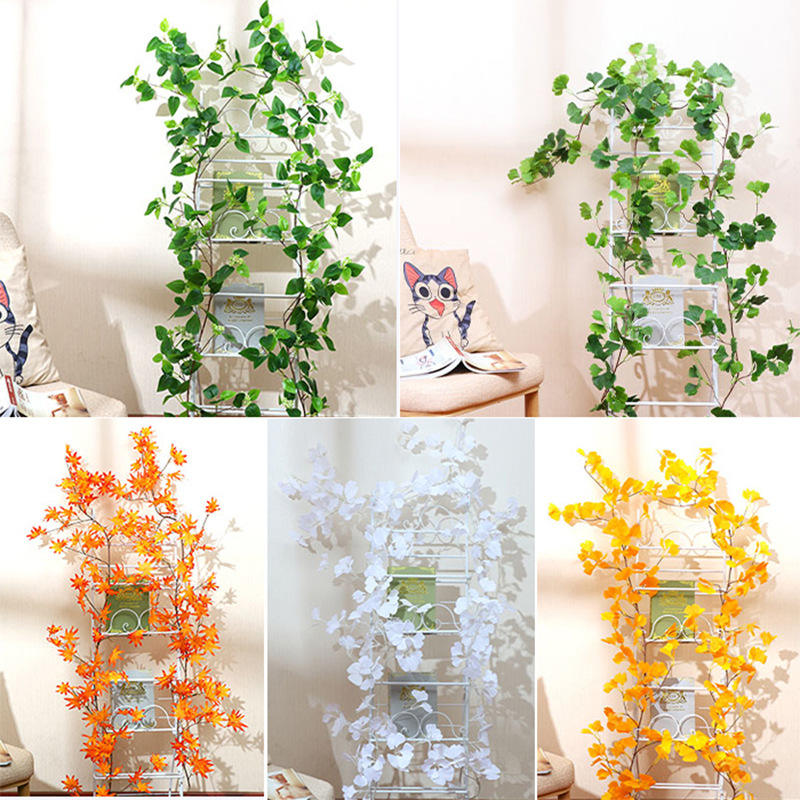 Hojas de Plantas Artificiales con Alambre de Ratán, Alta Simulación, Decoración de Interiores