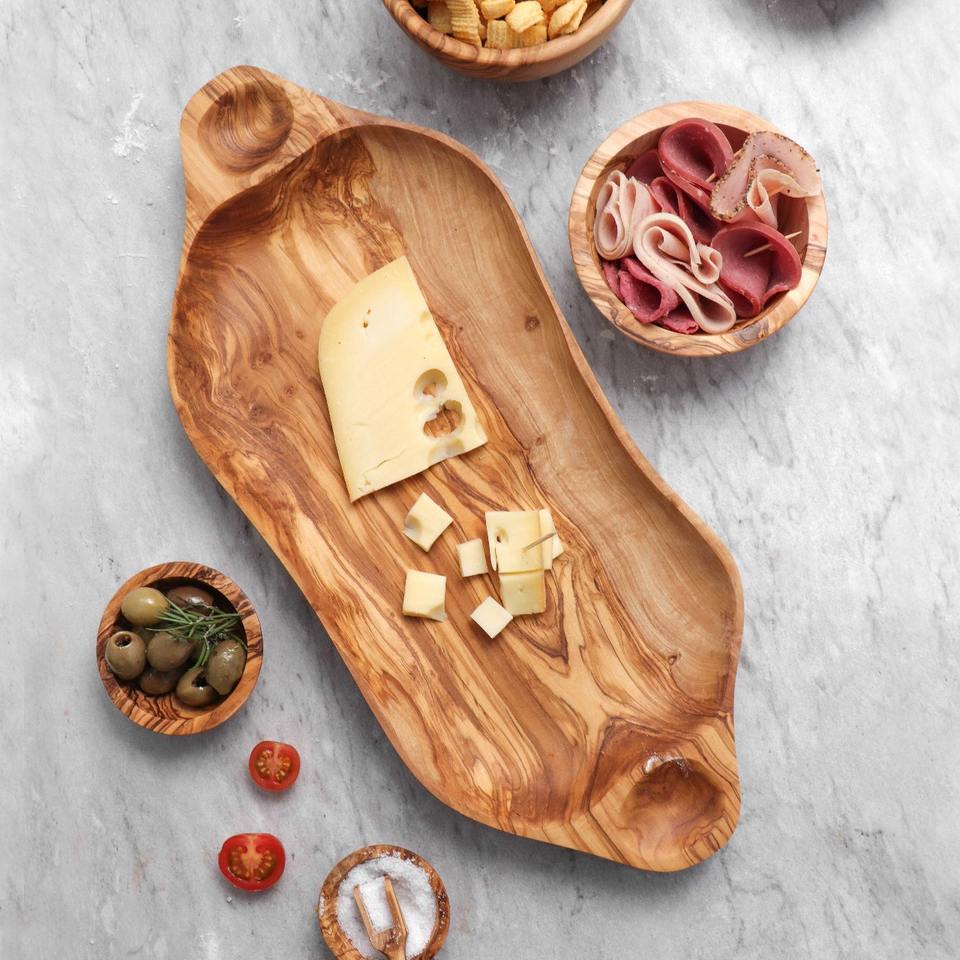 Plato de Servir de Madera de Olivo Tunecino Vintage Rústico Mediterráneo Tallado a Mano de Lujo ArtisRaw, Decoración Premium para el Hogar