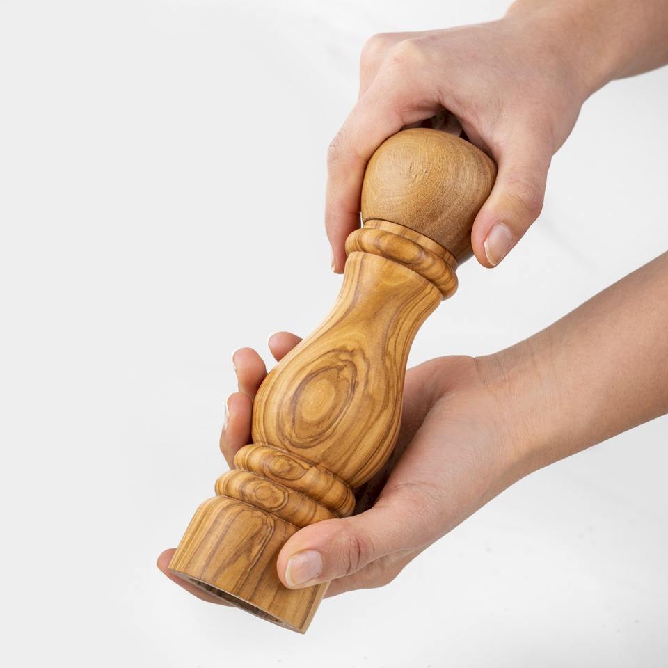 Juego de Molinillos de Sal y Pimienta de Madera de Olivo Tunecina Rústica Premium Hechos a Mano por ArtisRaw - Diseño Vintage Tallado