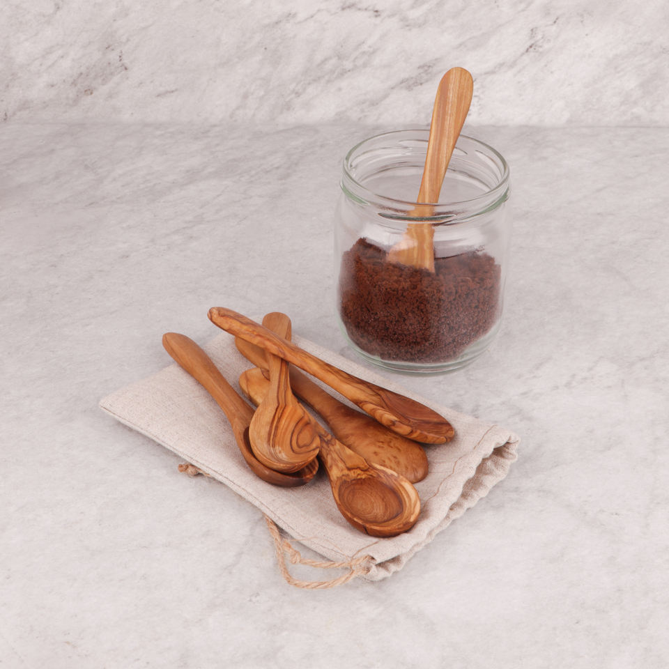 Juego de Cucharas de Camping Ecológicas de Madera de Olivo ArtisRaw SS001, Utensilios Vintage Hechos a Mano con Grano Rico, 10 Años de Vida Útil