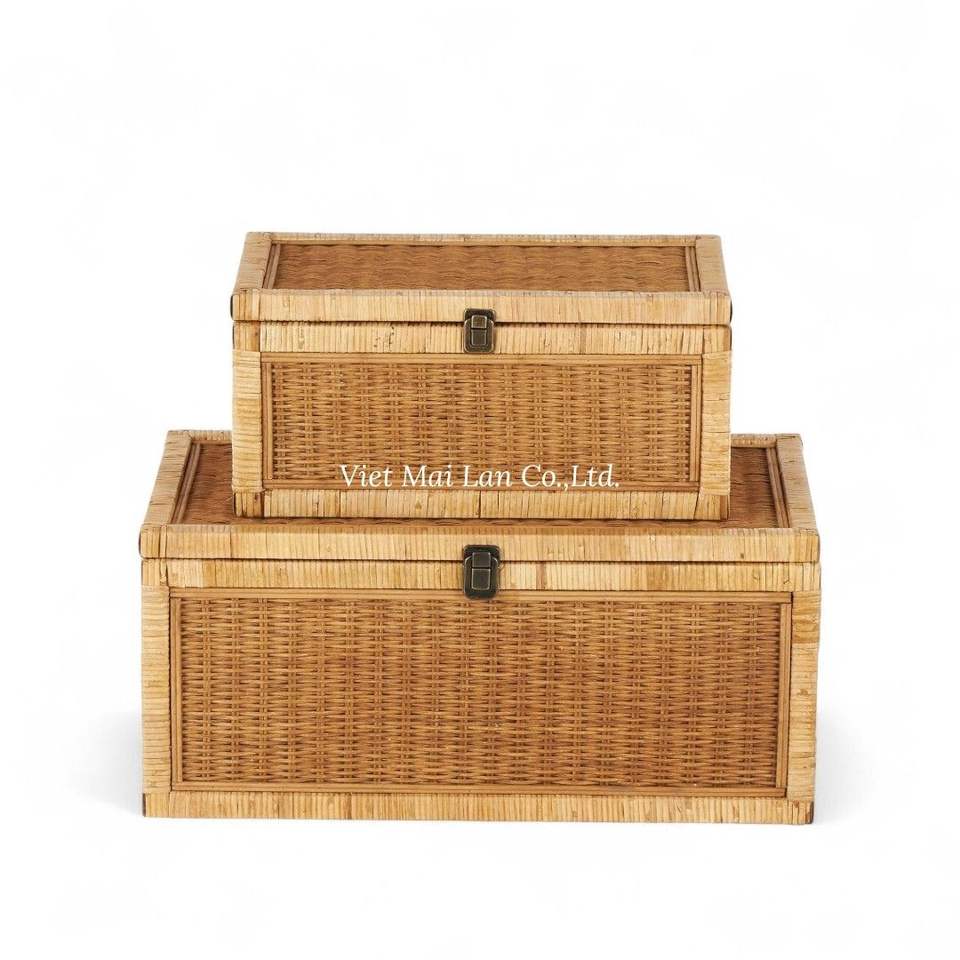 Caja de Almacenamiento de Ratán Artesanal Hecha de Ratán Natural para Almacenamiento en el Hogar, Sala de Estar y Dormitorio