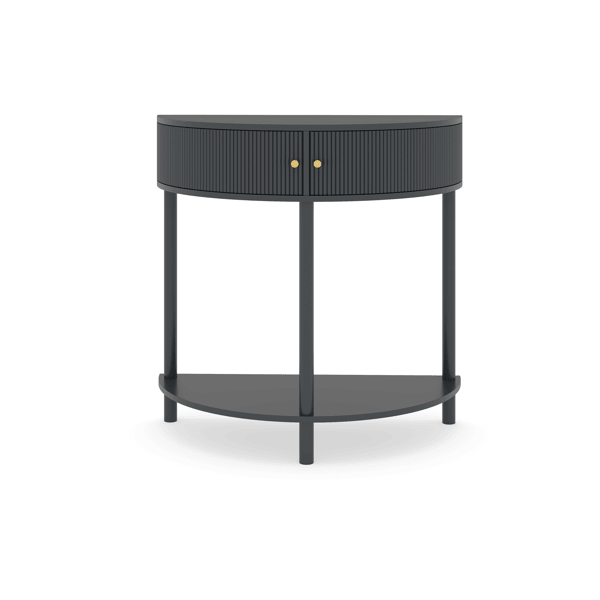 Mesa Consola con Patrón de Ondas Hecha a Mano, Diseño Único de Media Luna con 2 Cajones de Almacenamiento, Acabado Gris Oscuro