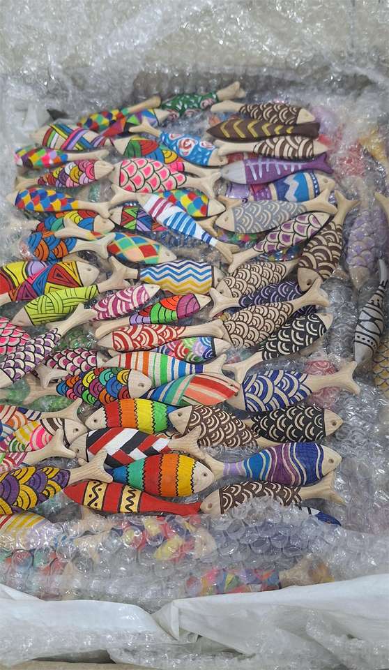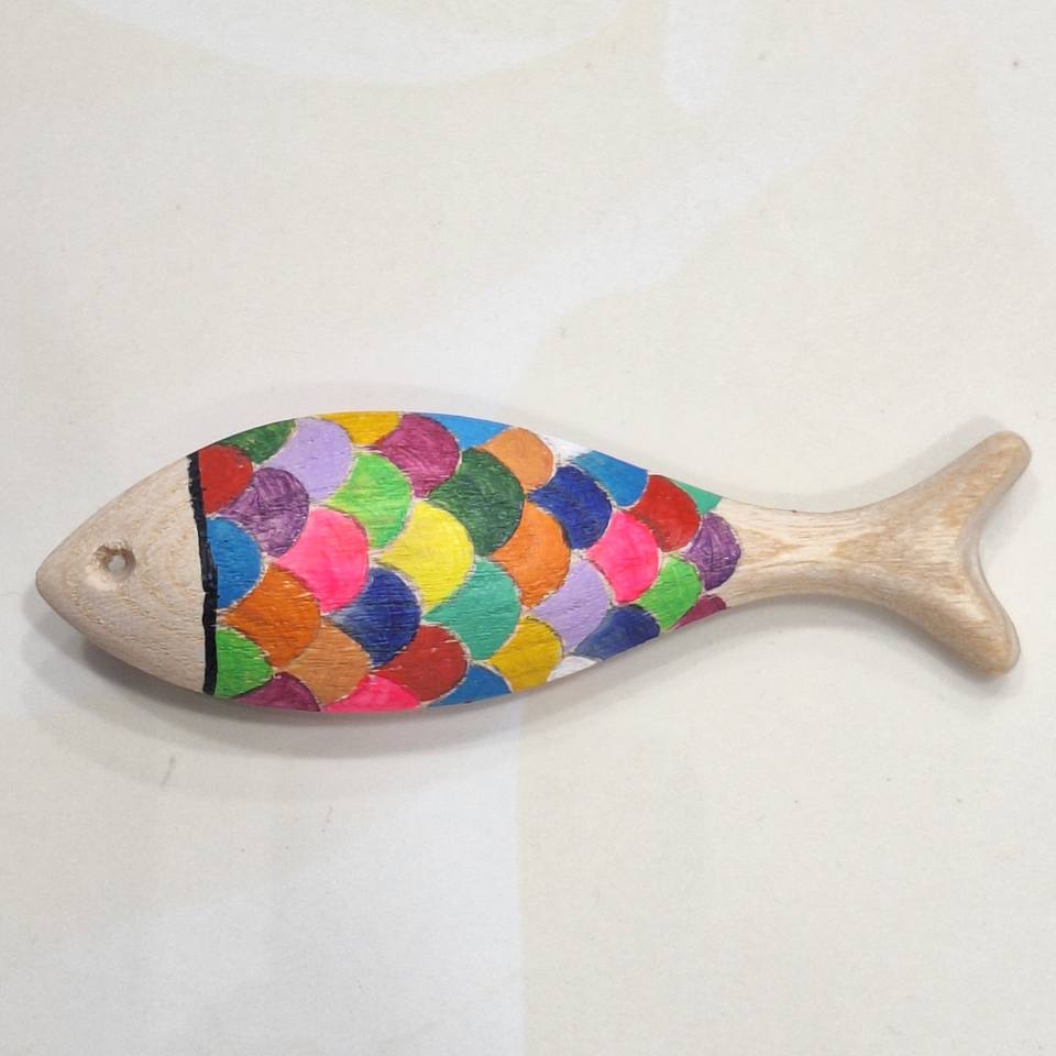 Pescado de madera pintado a mano artesanal decoración del hogar artesanía de estilo rústico