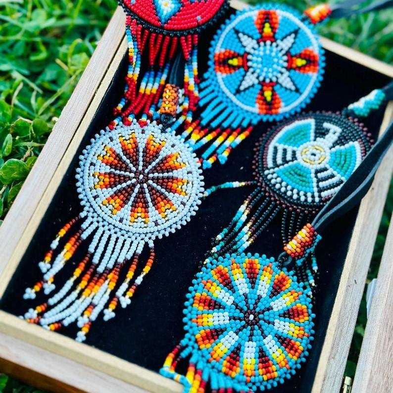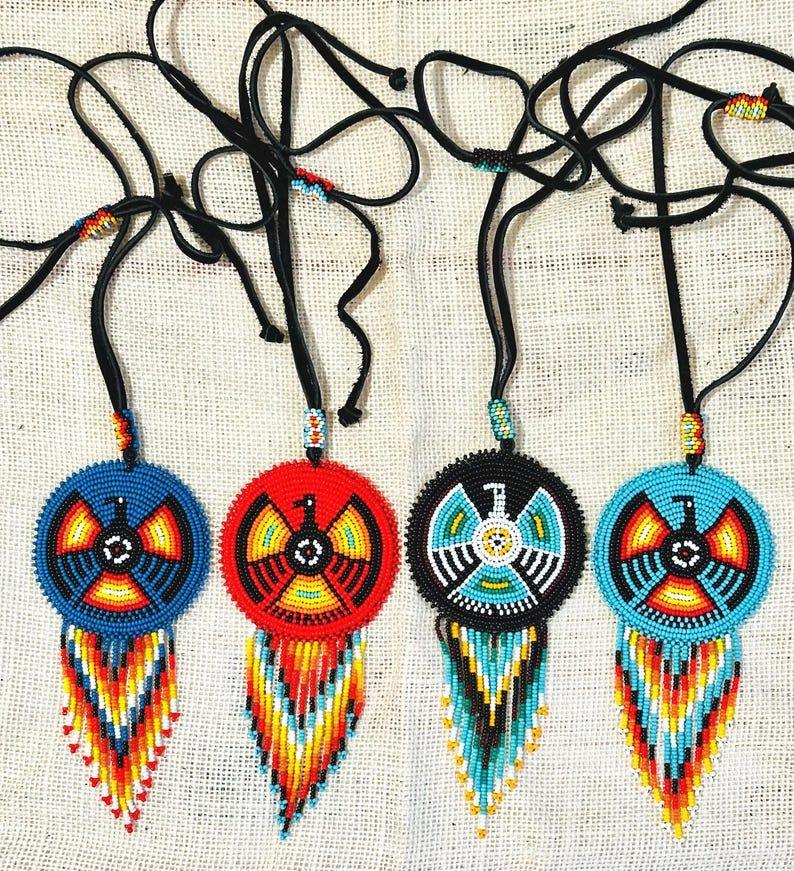 Collar artesanal hecho a mano con cuentas que muestra un colorido medallón Starburst con flecos étnico Tribal Boho declaración joyería Mujer