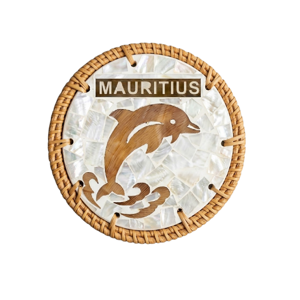 Posavasos Artesanal de Concha con Borde de Ratán, Protector Térmico de Concha Marina Natural, Accesorio Decorativo Ecológico para Cocina