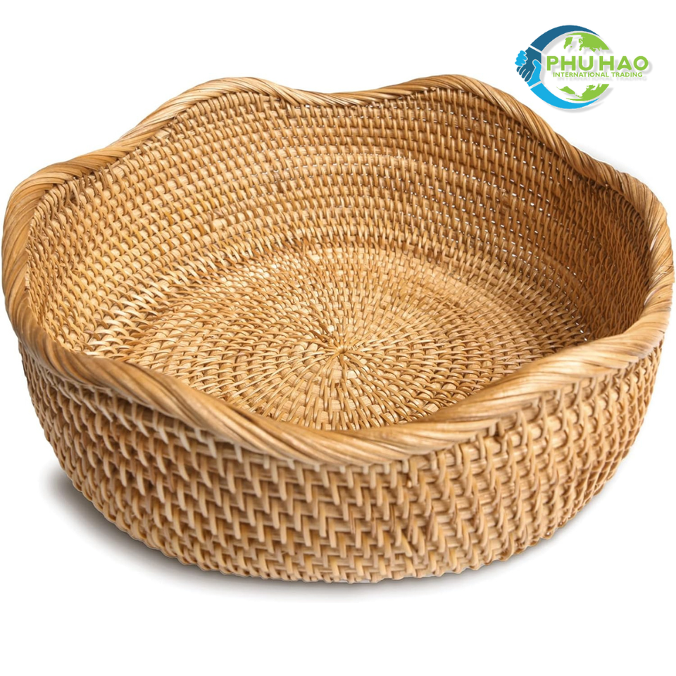 CESTA DE RATTAN DE Mimbre Redonda Artesanal/BANDEJA Bandeja de ratán tejida a mano ecológica Decoración de mesa y cesta para servir alimentos
