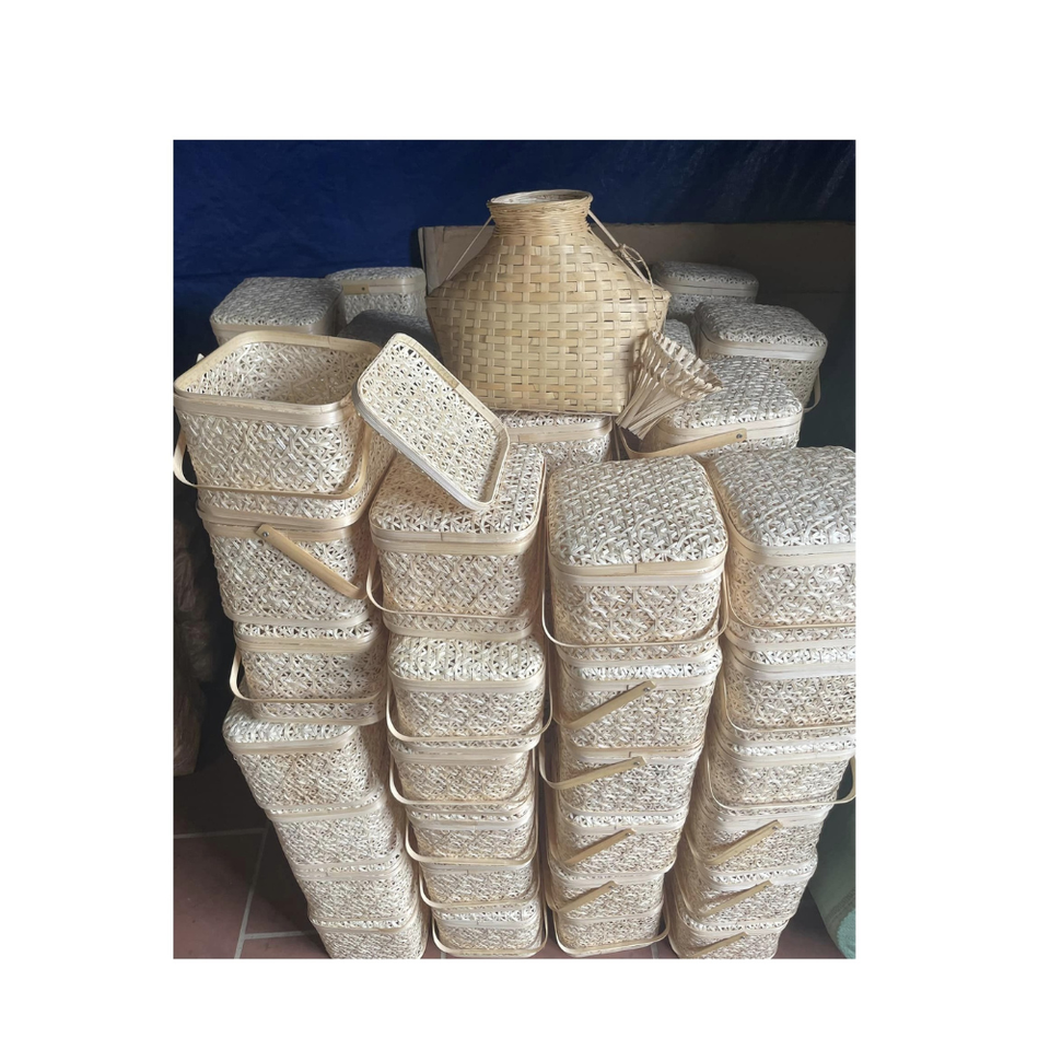 Caja de Pastel de Bambú Artesanal con Tapa - Cesta Decorativa al por Mayor para Empaque de Regalos de Año Nuevo Lunar