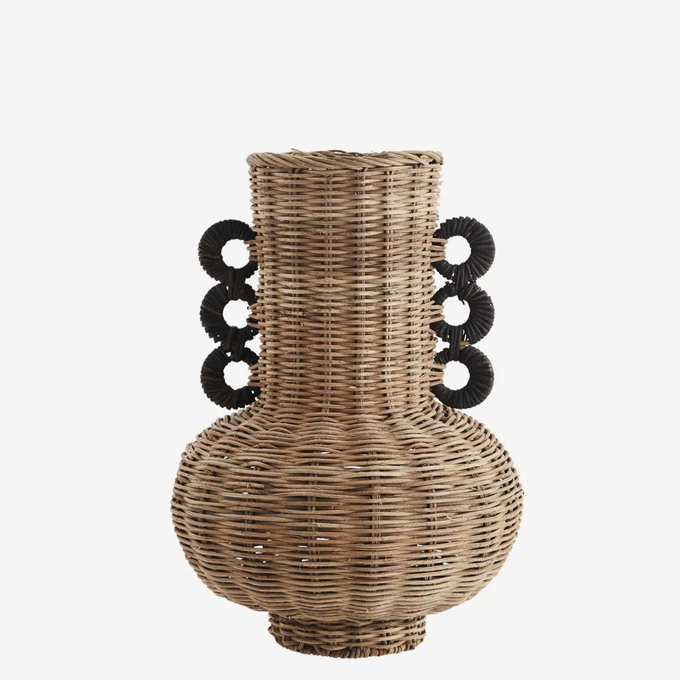 Jarrón de mimbre natural artesanal, jarrón decorativo de mimbre tejido de diseño único, perfecto para exhibición de flores o decoración de mesa de comedor
