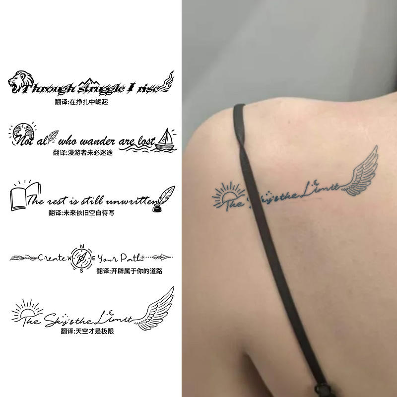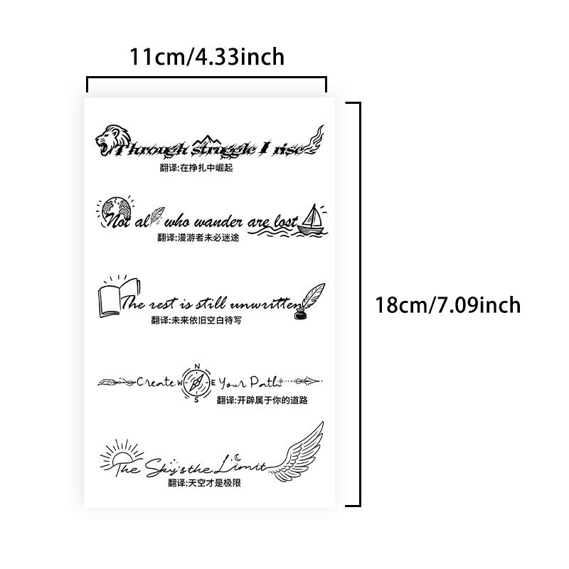 Letras artísticas y gráficos de dibujos animados tatuaje temporal tatuaje semipermanente a prueba de agua último para 2 semanas tatuaje de hierbas para brazo