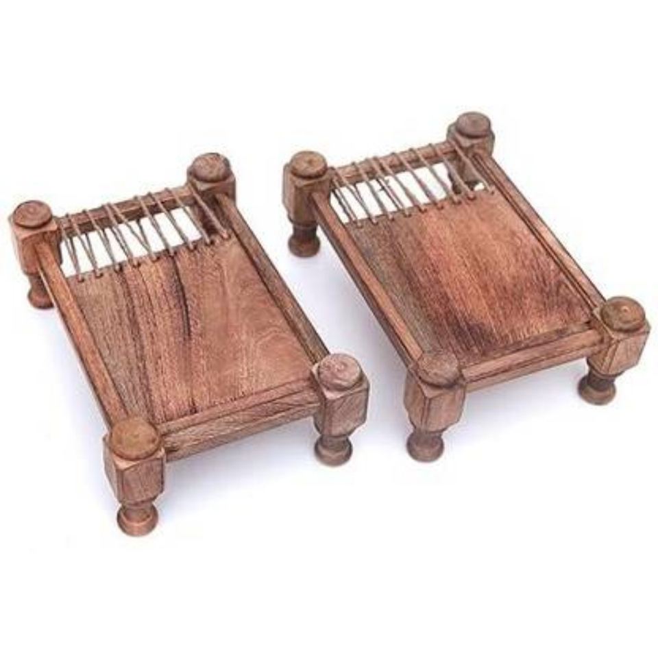 Bandeja de Madera Artística Charpai Mini Khatiya para Servir Aperitivos, Frutos Secos, Bodas, Diwali, Hecha a Mano, Ecológica para el Hogar