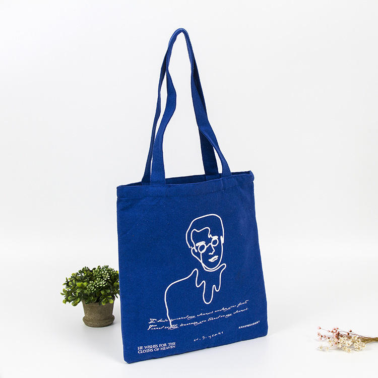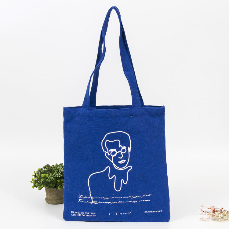 Bolso de mano de lona con estampado de retrato artístico Bolso de compras de hombro con patrón inglés azul