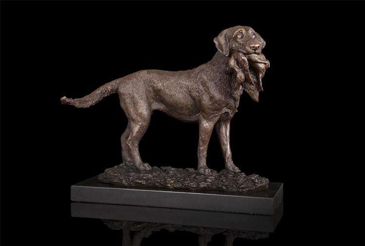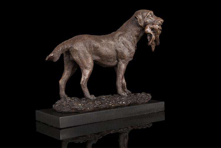 ArtsHom-estatua de bronce de DW-039 para perro de caza con presa, figuritas de Arte de Metal de bronce, figuritas de animales para decoración interior