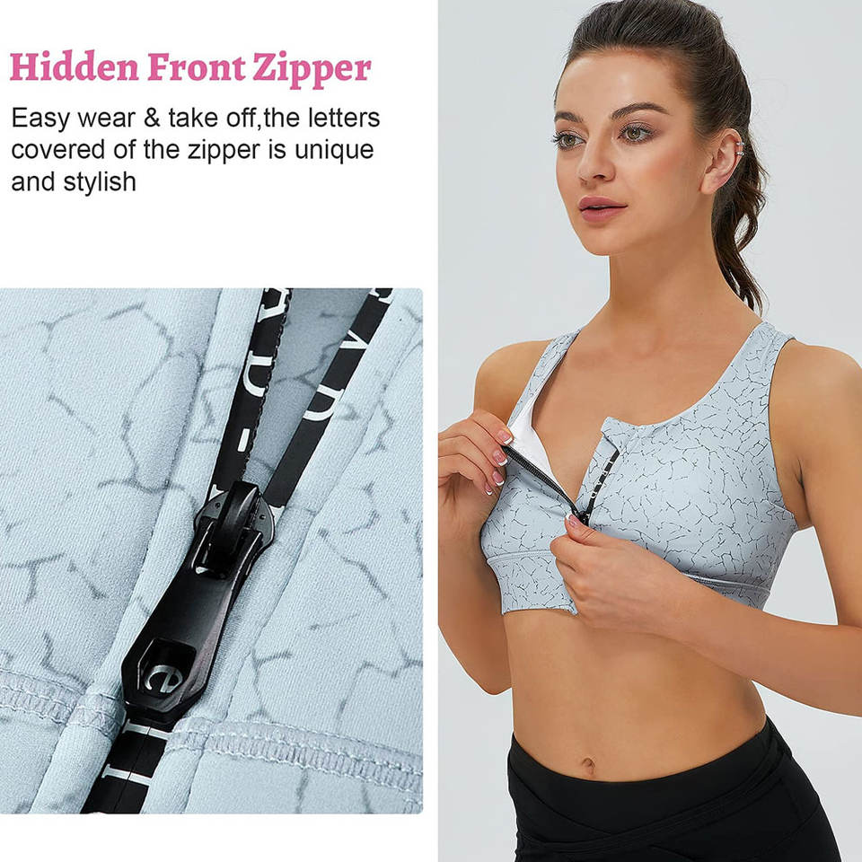 Sujetador Deportivo con Diseño de Sublimación Según las Demandas del Cliente, con Cierre de Cremallera Delantera, Venta Directa, Sujetadores Deportivos para Mujer