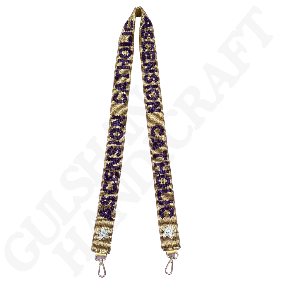 Ascension Catholic Cotton Beaded Purse Correa Custom School Spirit Bolso ajustable Cadena Team Colors Cross Charm Alta calidad