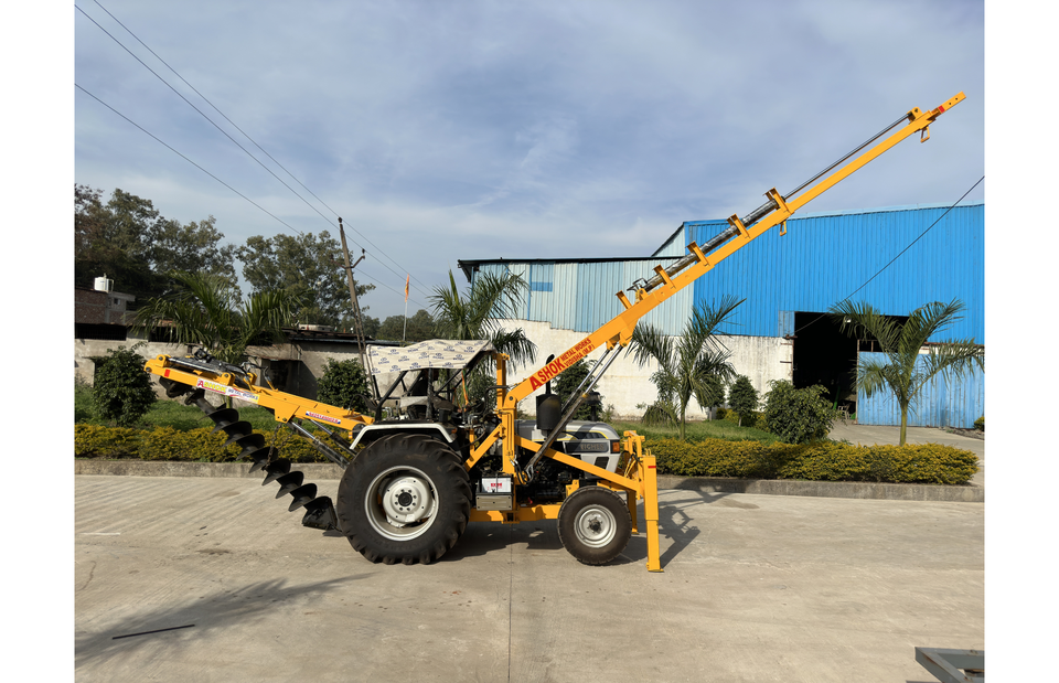 Máquina Perforadora de Tierra para Tractor Ashok Metal Works con Estabilizador y Extensión de Estructura para Tractor, 1 Año de Garantía