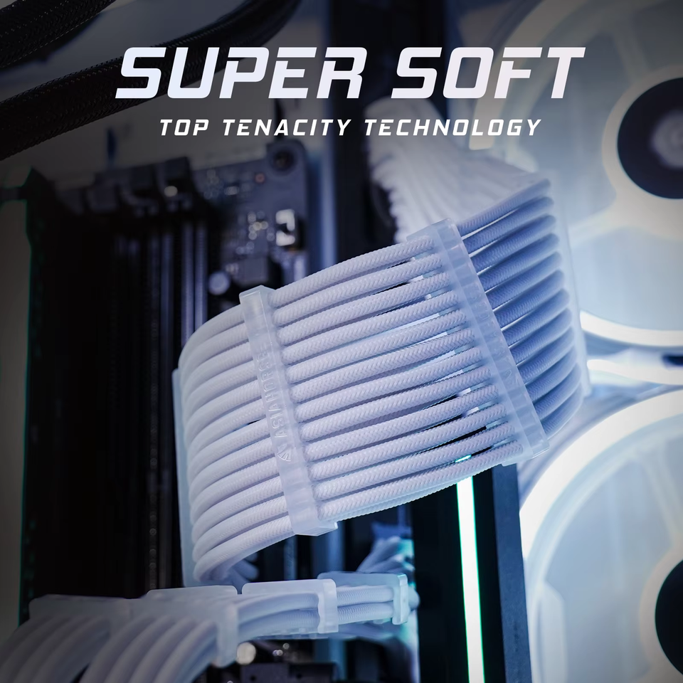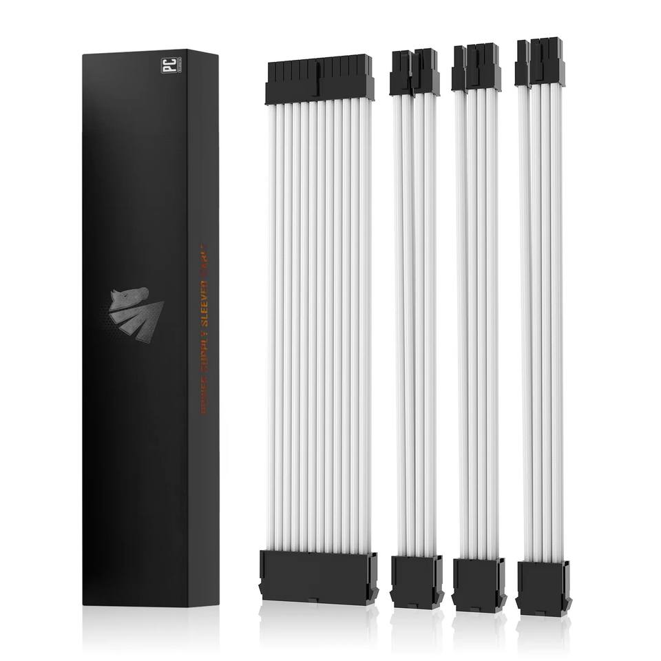 Asiahorse - Kit de Extensiones de Cables de Alimentación para PC, 24 Pines y 8 Pines, Color Blanco, en Existencia
