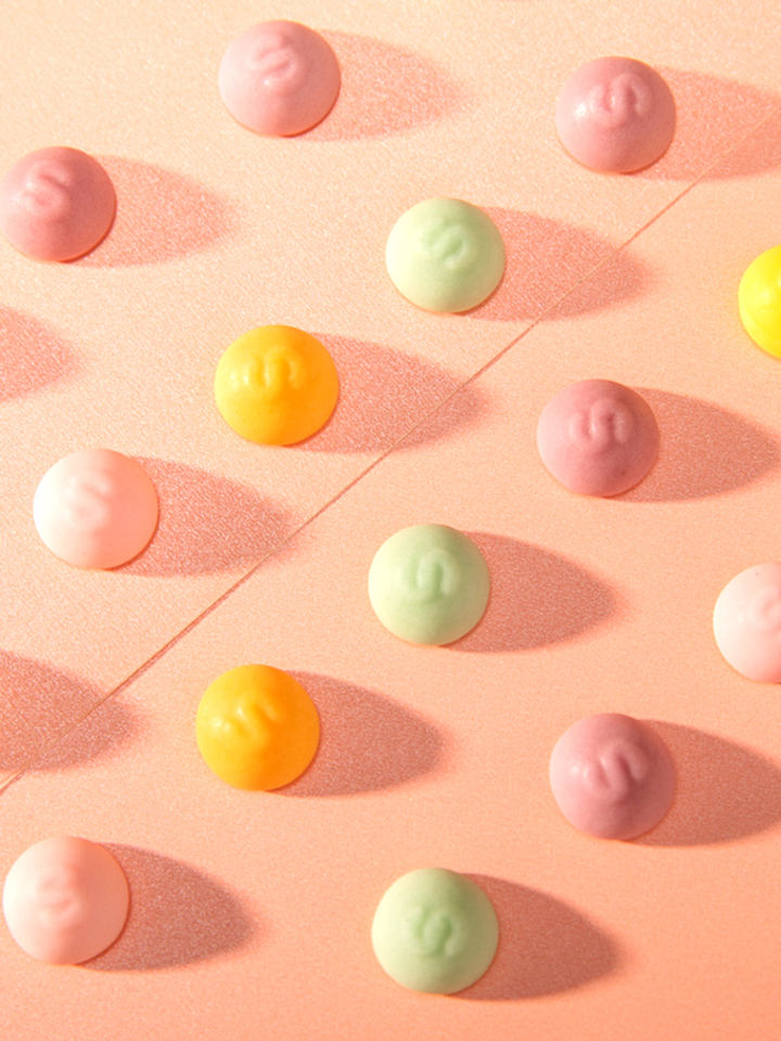 Aperitivos asiáticos Gummy Candy 50g Colorful Fruit Flavored Little Skiittles Egg Empaquetado en bolsas