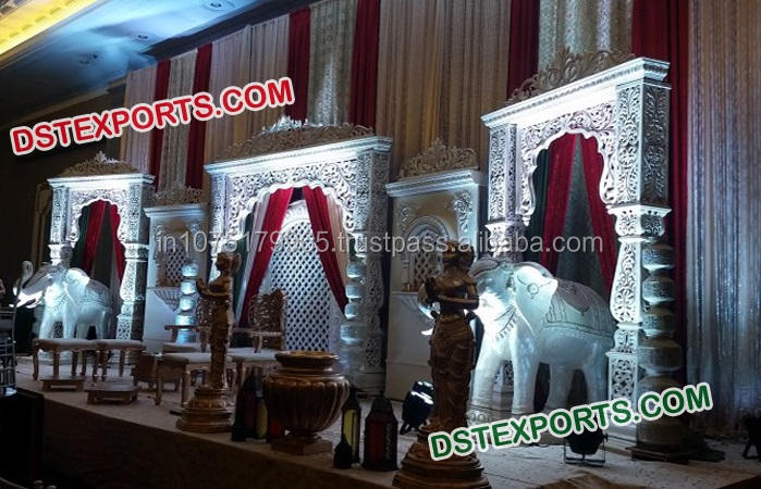 Asian Wedding Crystal Pillars Stage Set