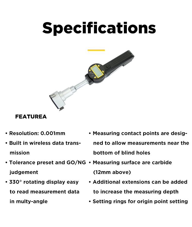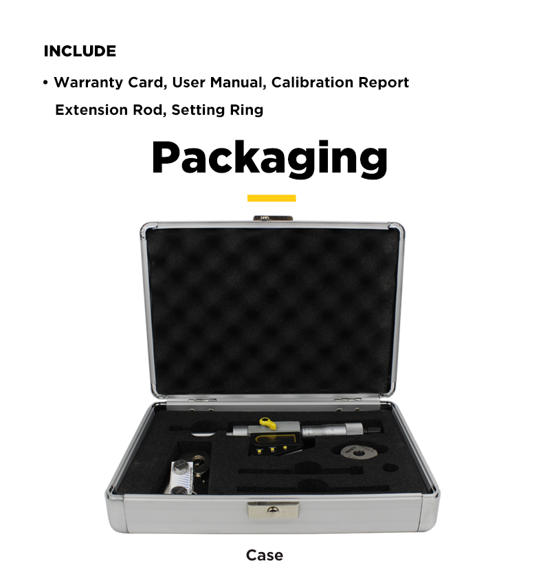 Micrómetro de Profundidad Asimeto con Resolución de 0.01, Pantalla Giratoria de 330 Grados, Equipado con Barra de Extensión para Aplicaciones en Múltiples Escenas