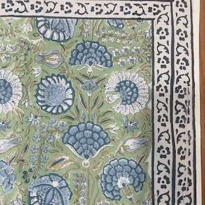 Espárragos verde Fuerza Aérea azul indio mano bloque Floral impreso 100% algodón tela camino de mesa boda eventos hogar Decoración fiesta