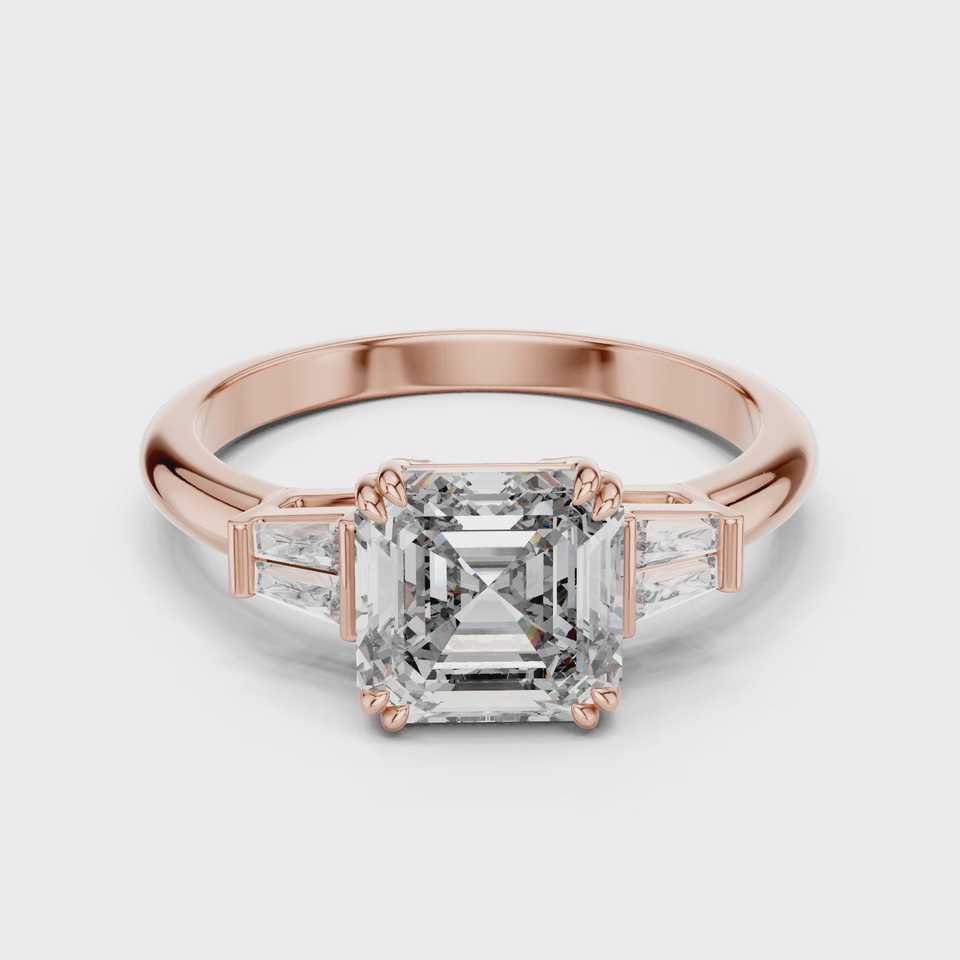 Anillo de tres piedras con diamante cultivado en laboratorio talla Asscher